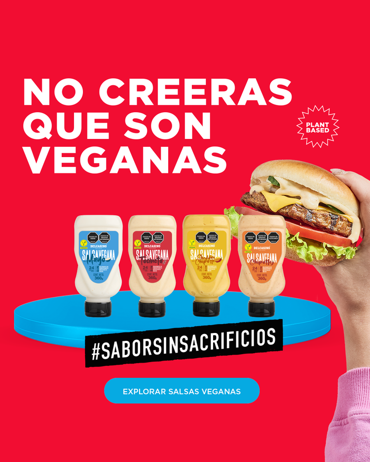 Salsa vegana sabor chipotle picante, sin gluten ni colorantes artificiales.